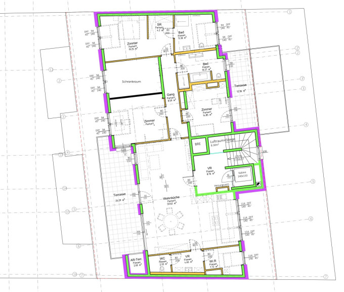 - ca. 60 m2 große Wohnküche mit hochwertig ausgestatteter Küche mit Kochinsel und Zugang zur ca. 25 m2 großen westseitigen Terrasse mit Abstellraum