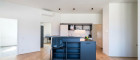 Über eine Treppe gelangt man in die obere Wohnebene, die einen geräumigen Wohn- und Essbereich mit offener Küche umfasst. Von hier aus hat man zudem Zugang zur Terrasse, die zum Entspannen im Freien einlädt.