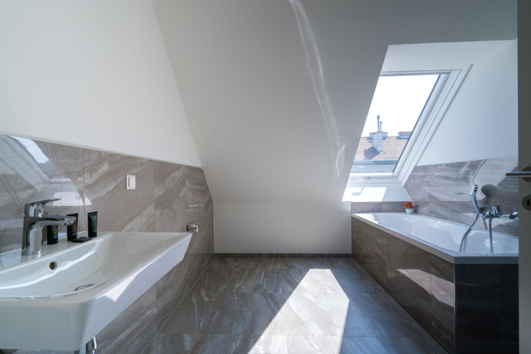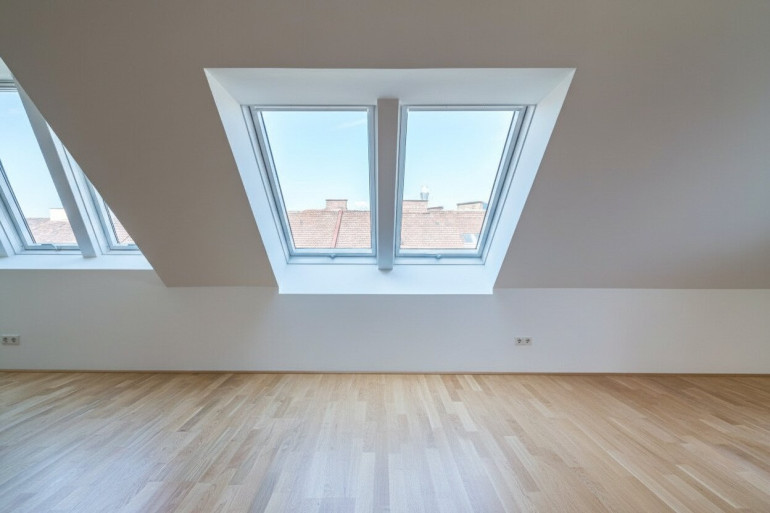 Die Wohnung wird über den Vorraum im 1. Dachgeschoss betreten, der ausreichend Platz für eine Garderobe bietet und darüber hinaus auch einen Abstellraum.