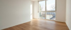 Der kompakte Eingangsbereich öffnet sich direkt in den Wohnbereich und bietet Platz für eine Garderobe. Nach dem Eintreten ist rechter Hand eines der beiden Badezimmer zu finden. Dieses verfügt über ein WC mit Handwaschbecken von LAUFEN und über eine Dusche mit Glas-Duschtrennwand und Markenarmaturen von GROHE.