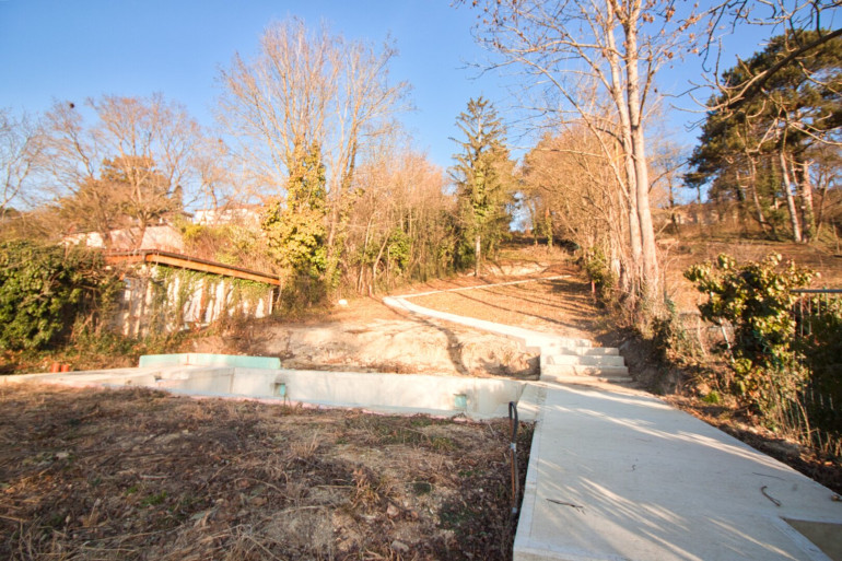 Weiter geht es in die sehr großzügige Wohnküche mit fast 43 m². Der helle Raum mit großzügigem Fensterblick ins Grüne schafft eine angenehme Wohnatmosphäre – die Küche ist offen, optisch etwas separiert und somit perfekt in den Raum integrierbar. Auch eine praktische kleine Speis wurde eingeplant. Vom Wohnzimmer aus begehen Sie auch das absolute Highlight dieses Objekts: den riesigen, unglaublich schönen ca. 1.000 m² großen Eigengarten mit gemütlicher Terrasse. Und das ist noch nicht alles: Über eine Treppe gelangen Sie eine Gartenetage höher wo ihr privater Swimmingpool zu gemütlichen Sonnen- und Sommerstunden einlädt.