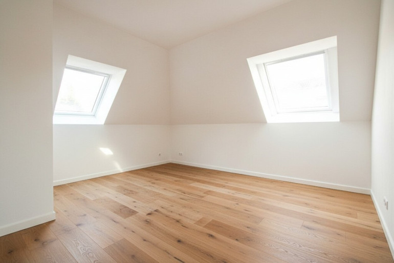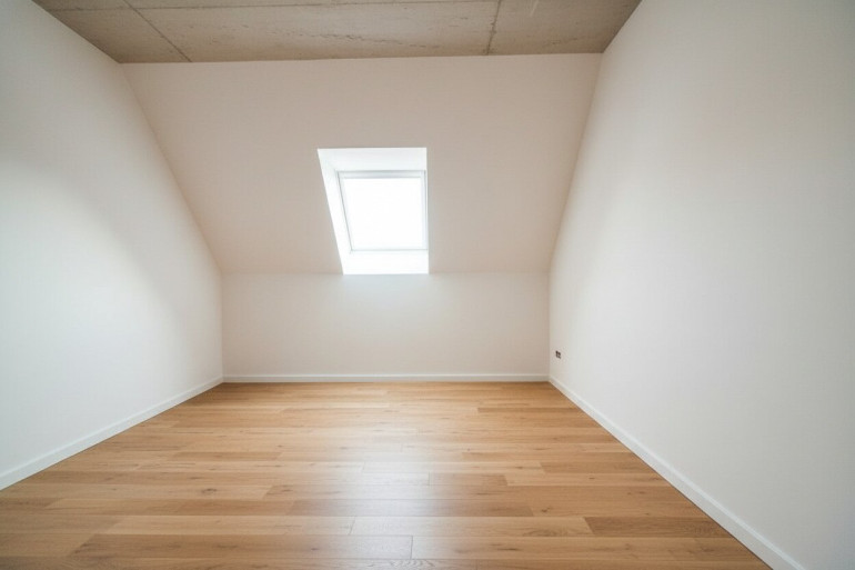 Im oberen Stockwerk gibt es ein weiteres Badezimmer. Dieses bietet einen Waschtisch und eine Badewanne von LAUFEN, einen Sprossen-Handtuchwärmer, ein WC und einen praktischen Waschmaschinenanschluss. In diesem Stockwerk stehen drei weitere, natürlich belichtete Zimmer mit ca. 18 m², 17 m² und 13 m² zur Verfügung – der größte Raum mit direktem Zugang zum rund 11 m² großen Balkon, der zusätzlichen Freiraum im Alltag bietet.
