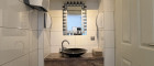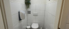 Sanitärbereich mit Dusche: Komfortabel ausgestattet, ideal für Personal und Kundschaft.