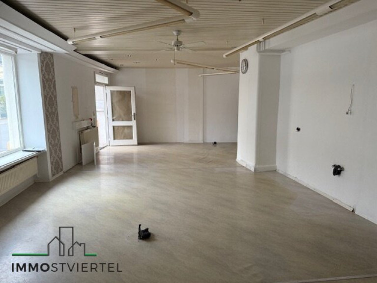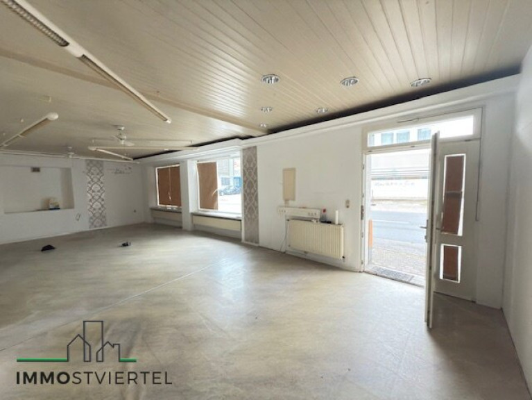 * Aufgeteilt derzeit in einem ca. 50 m² großen Geschäftsbereich plus Nebenraum mit ca. 16 m² ( Kochnische, Büro, WC plus 1,2 m² ,....)