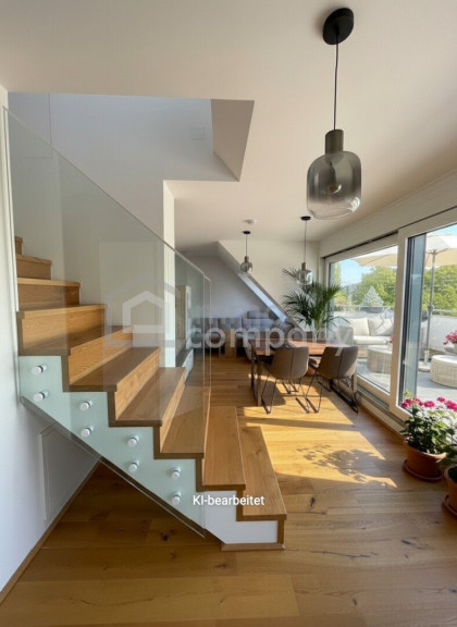 Die klimatisierte, helle 3-Zimmer Dachgeschoss-Maisonettewohnung mit großer Terrasse