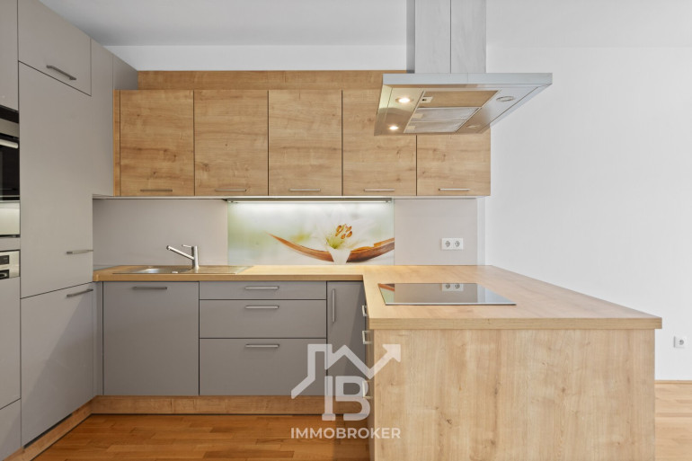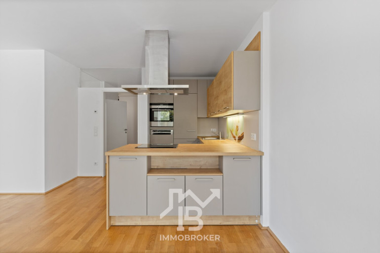 Parkett, Fliesen, Fußbodenheizung, Einbauküche, Wohnküche / offene Küche, Personenaufzug, Badewanne, Tiefgarage, Wasch/Trockenraum