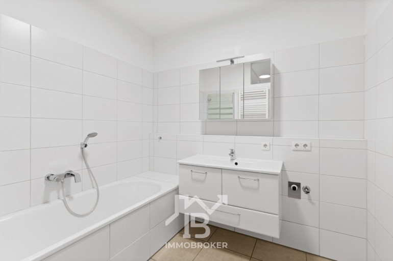 Badezimmer mit Badewanne und Platz für Waschmaschine & Trockner