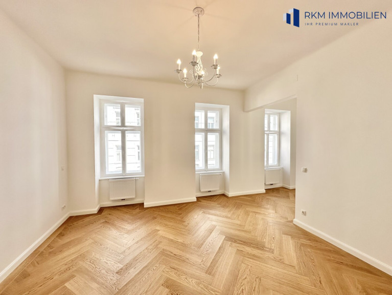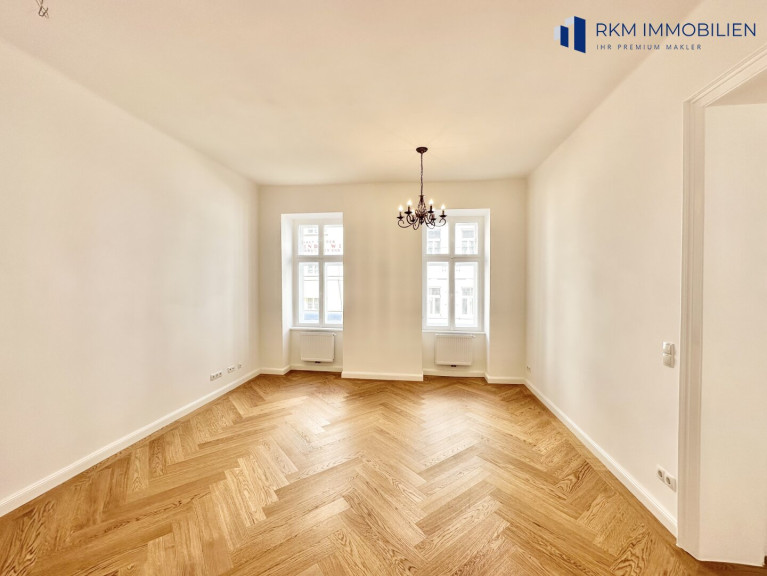 Die Wohnung wurde soeben umfassend und hochwertig saniert – dabei blieb der historische Charakter erhalten, während gleichzeitig ein moderner Wohnstandard mit stilvollen Details geschaffen wurde.