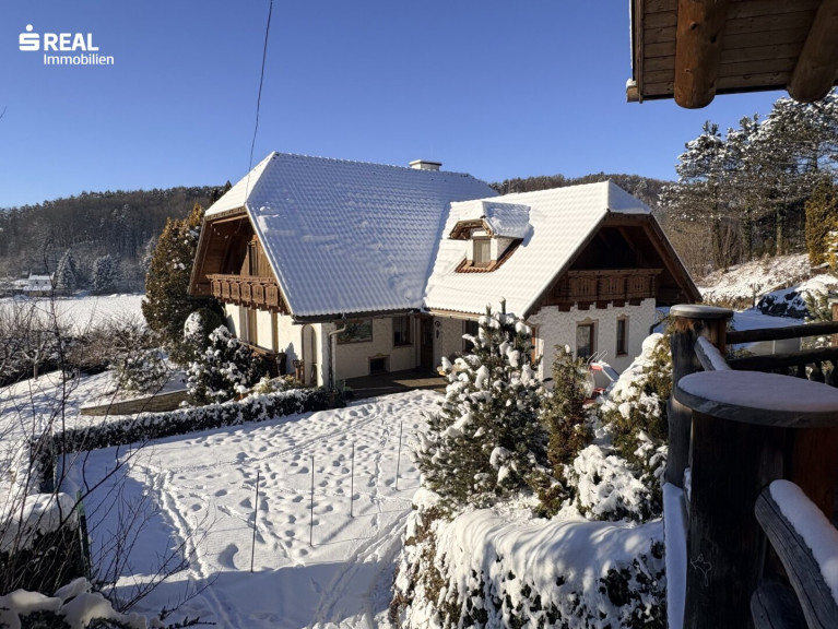 Das gepflegte und gemütliche Familienwohnhaus ist unterkellert und wurde 1970 in Massivbauweise errichtet, ein Zu- und Umbau erfolgte im Jahr 1992. Im Erdgeschoss befinden sich eine großzügige Wohn-Essküche mit Tischherd und Speis, das Badezimmer mit Dusche, drei Zimmer, ein Vorraum, WC sowie ein Abstellraum. Die großzügige, überdachte Terrasse lädt zum Verweilen ein. Im Dachgeschoss stehen drei weitere Zimmer, ein Wohnzimmer, ein Badezimmer mit Wanne und ein Vorraum zur Verfügung. Der Keller beherbergt eine Sauna, ein Badezimmer mit Dusche und WC, eine Doppelgarage, einen Technikraum, einen Wirtschaftsraum und mehrere Lagerräume. (HWB: 114 kWh/m²a, fGEE: 0,99)