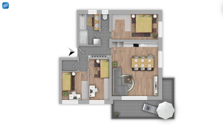 * Sehr guter Grundriss – größtes Zimmer separat von den beiden mittleren Zimmern