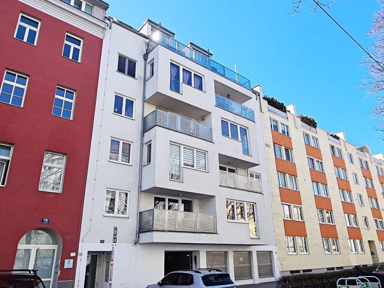 LORYSTRASSE, U3-Nähe, 61 m2 Neubau mit 80 m2 Terrasse, Wohnküche, 1 Zimmer, Duschbad, Parketten, 1. Liftstock