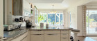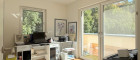Helle Fronten, warme Wandfarben und große Fensterflächen füllen den Raum mit Licht und Leichtigkeit.