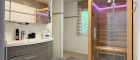 Das Badezimmer mit Dusche hält eine Infrarotkabine bereit – regelmäßige Sessions stärken nicht nur Ihre Abwehrkräfte, sondern auch Ihr Energielevel.