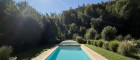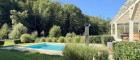 Der große Pool ist das glitzernde Herz des Gartens – mit Gegenstromanlage, Poolroboter und Solardusche.