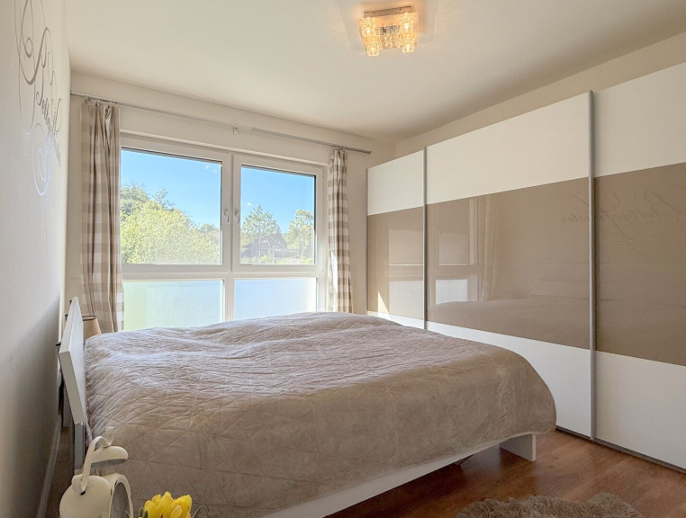 Fliesen, Laminatboden, Fußbodenheizung, Wohnküche / offene Küche, Südbalkon, Bad mit Fenster, Dusche, Kabel/Satelliten-TV, Carport, Swimmingpool