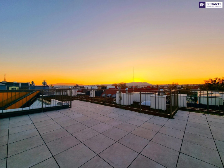 Ihre neue Traumwohnung wird Sie restlos begeistern und teilt sich einen geräumigen Vorraum mit Platz für eine Garderobe, einen riesigen und nahezu zur Gänze uneinsichtigen Wohn-Essbereich mit Zugang zu 2 Terrassen, 4 getrennt begehbare Schlafzimmer, wobei eines einen eigenen Schrankraum besitzt, 2 großzügige Bäder mit Fenster, Dusche, Badewanne und WC, ein separates WC, einen praktischen und super großen Abstellraum sowie das Highlight der Wohnung - eine riesige Dachterrasse mit einem 360Grad Rundumblick.