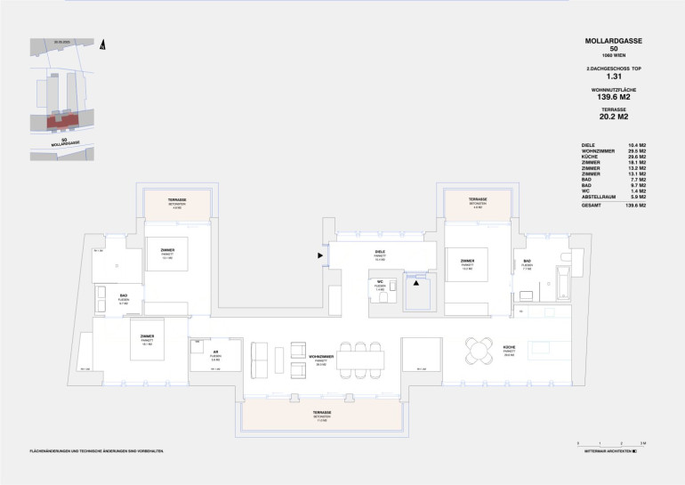 Das Projekt MOLLARD 50 präsentiert sich als moderner Neubau mit drei Gebäudetrakten samt Tiefgarage. Die Architektur überzeugt durch klare Linien und durchdachte Details, während die Grundrisse mit höchster Flexibilität und intelligenter Raumaufteilung gestaltet sind. Großzügige Balkone, Loggien, Terrassen und Gartenflächen erweitern den Wohnraum fast jeder Wohnung ins Freie und schaffen eine besondere Lebensqualität.
