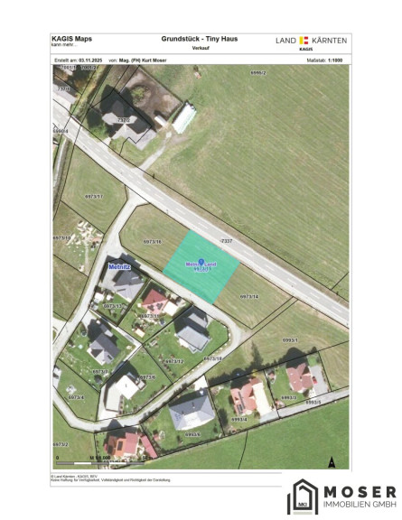 Das Tiny Haus befindet sich neben der Bundesstraße auf dem Grundstück 6973/15, welches ein grundbücherlich verbüchertes Gesamtausmaß von 957m² ausweißt.
