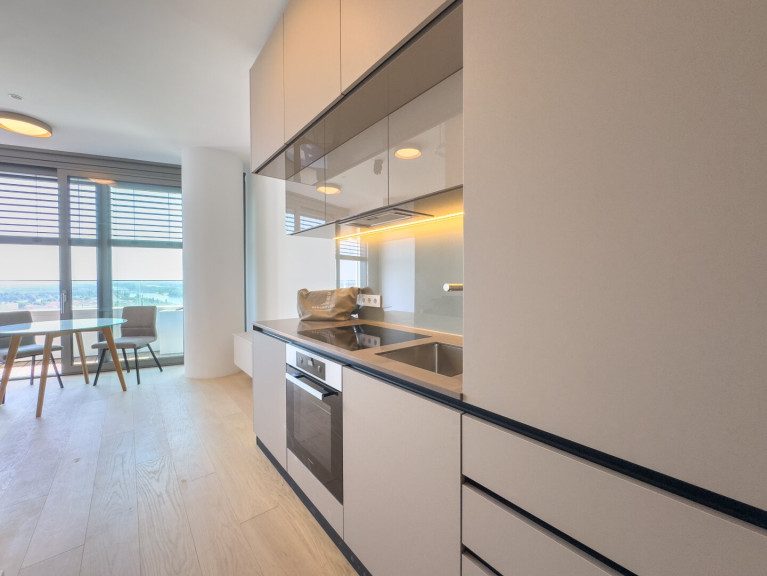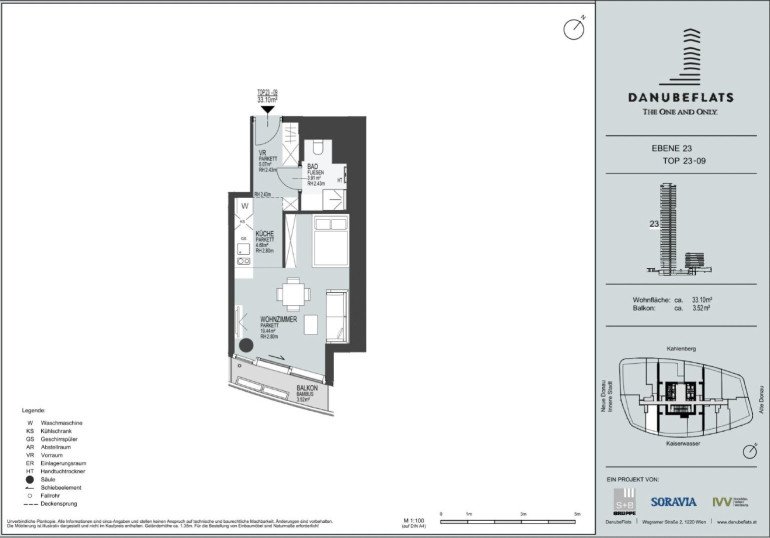 Willkommen im 23. Stock der legendären Danube Flats – wo Design, Komfort und Lifestyle auf höchstem Niveau verschmelzen. Dieses exklusive Apartment mit ca. 33 m² Wohnfläche und zusätzlich 3,5 m² traumhaftem Balkon wird Sie vom ersten Moment an begeistern. Der unvergleichliche Blick auf das Mühlwasser, windgeschützt in südöstlicher Ausrichtung und ohne vis-à-vis, sorgt für lichtdurchflutete Morgenstunden und entspannte Sonnenaufgänge direkt vom eigenen Rückzugsort.