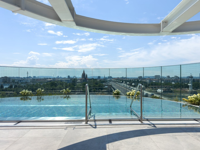 Die Danube Flats bieten ein All-in-One-Konzept der Extraklasse: Ein großzügiger Spa-Bereich mit Sauna, ein ganzjährig beheizter Außenpool, ein topmodernes Fitnesscenter sowie eine elegante Cocktailbar und ein Restaurant mit attraktivem Gastgarten stehen ausschließlich den Bewohnerinnen und Bewohnern zur Verfügung. Die direkte Anbindung an die Neue Donau eröffnet einzigartige Freizeitmöglichkeiten direkt vor der Haustür – ob Joggen, Spazieren, Radfahren oder einfach den Ausblick genießen.