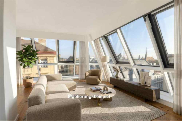 Im neu ausgebauten Dachgeschoss befinden sich insgesamt 6 exklusive Wohnungen, davon 3 stilvolle Maisonettwohnungen. Besonders hervorzuheben ist die Top 23, die mit einer großzügigen Dachterrasse und einem atemberaubenden 360-Grad-Blick über Wien beeindruckt – ein einzigartiges Wohngefühl hoch über den Dächern der Stadt.