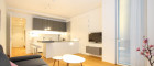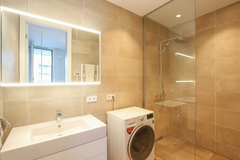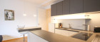 Diese elegante Wohnung im 5. Obergeschoss begeistert durch ihre durchdachte Raumaufteilung, lichtdurchflutete Wohnbereiche und eine erstklassige Ausstattung, die anspruchsvolles Wohnen auf höchstem Niveau garantiert. Der großzügige Wohn- und Essbereich öffnet sich mit großen Fensterfronten zu einer sonnigen Loggia, die als ruhiger Rückzugsort mit Blick in eine gepflegte Seitengasse dient. Die moderne Küche, überzeugt mit hochwertigen Geräten und fügt sich harmonisch ins klare Raumkonzept ein.