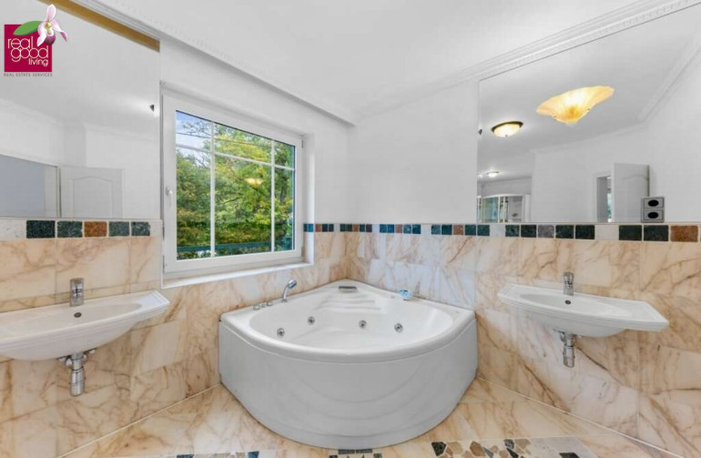 Fliesen, Steinboden, Parkett, Gas, Solarenergie, Fußbodenheizung, Kamin, Zentralheizung, Wohnküche / offene Küche, Einbauküche, Westbalkon, Bad mit Fenster, Badewanne, Dusche, DV-Verkabelung, Kabel/Satelliten-TV, Garage, Parkplatz, Alarmanlage, Sauna, Sicherheitskamera, Swimmingpool