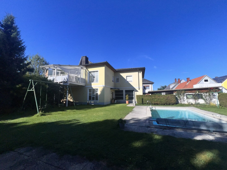 Das angrenzende Privathaus ist mit ca. 147 m² Wohnfläche im OG + 34 m² Keller- u. Lagerfläche im EG perfekt situiert. Der einladende Pool und die 2 Terrassen tun ihr übriges. Der äußerst großzügige Garten mit Gartenhütte wäre Ihr idealer Rückzugsort nach dem Geschäftsleben.