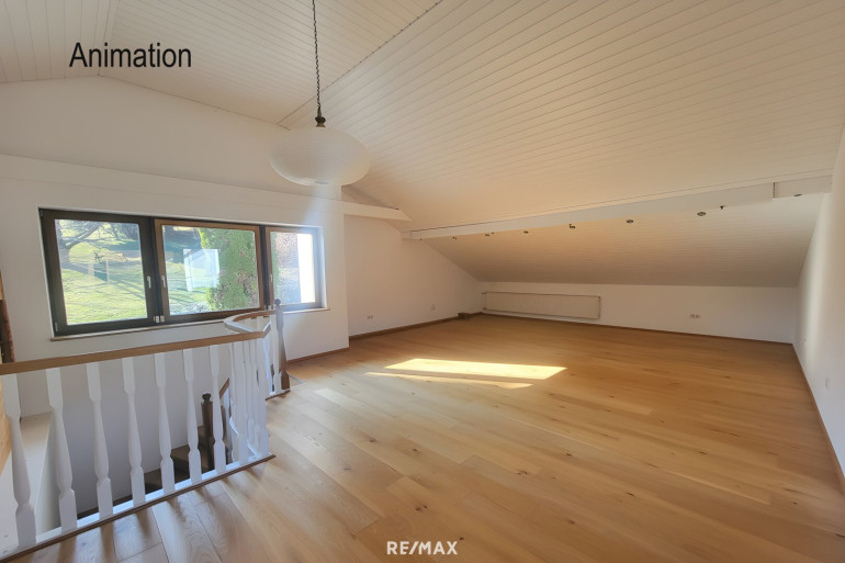 Sonnendurchfluteter Aufgang zum großen Wohnbereich mit Parkettboden