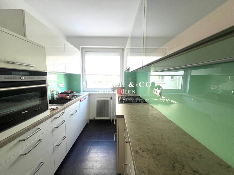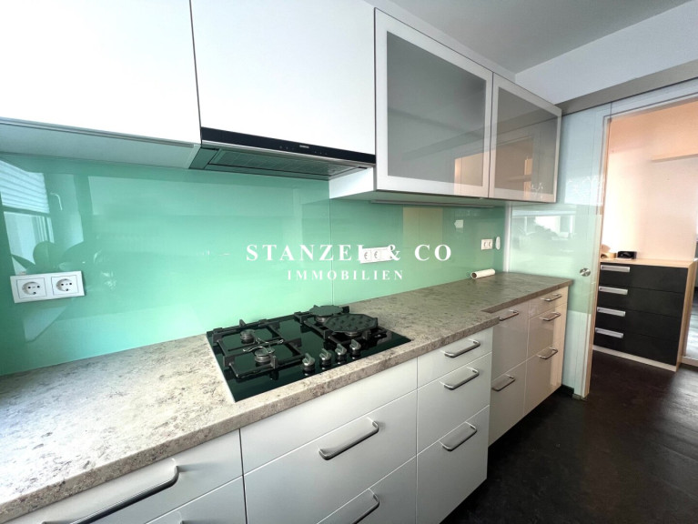 Die 6m² große ebenso neuwertige Küche, mit Fenster, ist ausgestattet ( Ceranfeld, Backrohr, Dunstabzug, Geschirrspüler - hier könnte man auch eine Waschmaschine anschließen, an Stelle eines Küchenkästchens ).