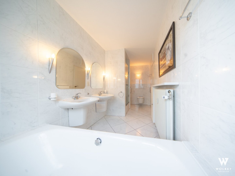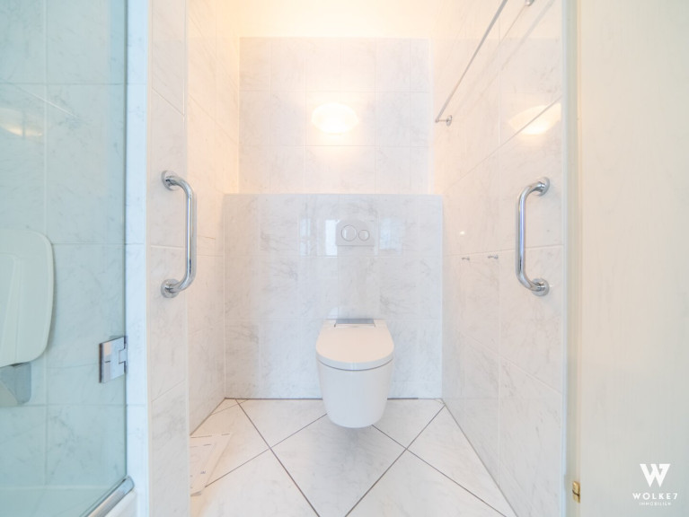 Ein zusätzliches Gäste-WC sowie hochwertige Parkett- und Marmorböden runden das stilvolle Gesamtbild ab.