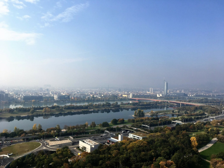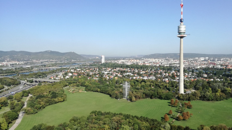 unverbaubarer westseitiger Ausblick über den Donaupark