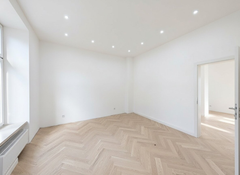 - Durchgehend neuer Fischgrät-Parkettboden aus Echtholz – edel, warm und klassisch.