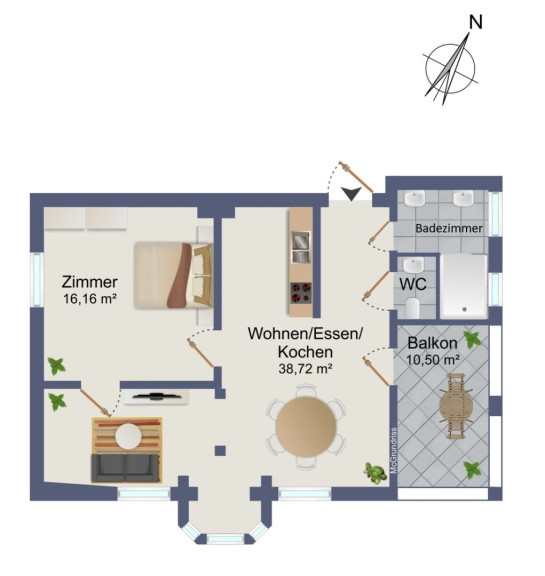 | Zimmer | 2 (Wohn-/Ess-/Küche + Schlafzimmer) |