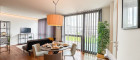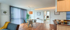 Großer, heller Wohn-Essbereich mit moderner Küche