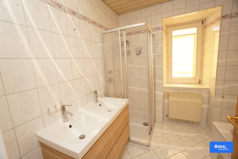 Fliesen, Laminatboden, Öl, Einbauküche, Bad mit Fenster, Badewanne, Dusche
