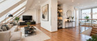 Wohnbereich: Helles und großzügiges Wohnzimmer im Dachgeschoss