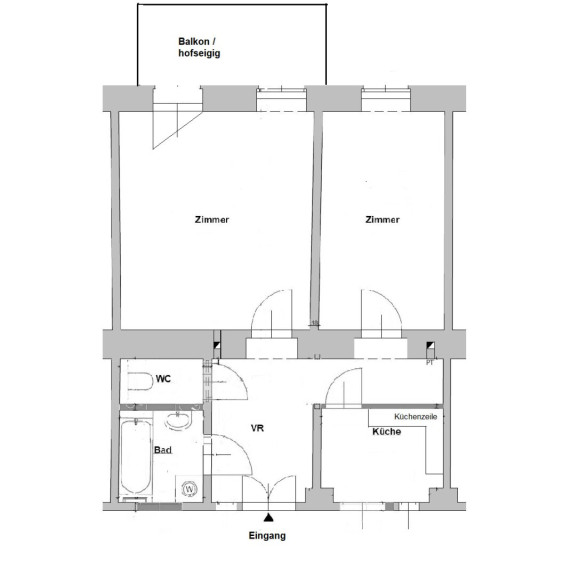 Die beiden Zimmer und der Balkon gehen in den begrünten, sehr ruhigen Innenhof!