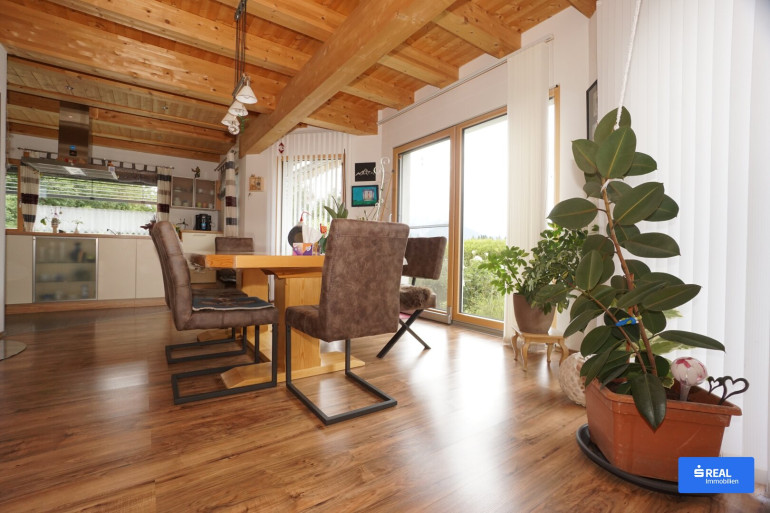 Erbaut im Jahr 2010 in nachhaltiger Holzbauweise, überzeugt das Haus mit einem offenen, lichtdurchfluteten Raumkonzept. Die großzügige Küche und das Wohnzimmer mit direktem Zugang zur Terrasse sind perfekte Rückzugsorte für die ganze Familie. Im Obergeschoss erwarten Sie drei Schlafzimmer, zwei davon mit Balkon und Bergblick, sowie ein großes, helles Badezimmer.