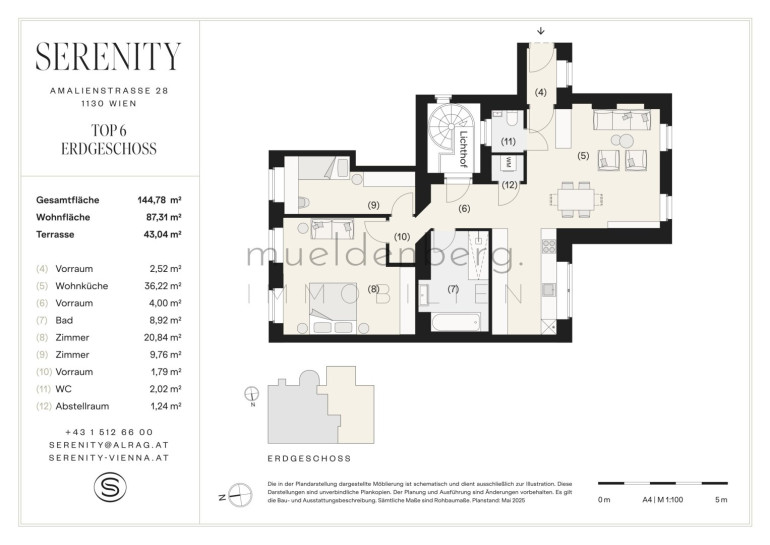 Willkommen in Ihrem neuen Zuhause in 1130 Wien – einem Ort, an dem modernes Wohnen auf höchsten Komfort trifft! Diese exquisite Wohnung mit einer großzügigen Fläche von 144,78 m² bietet Ihnen die perfekte Kombination aus stilvollem Design und durchdachter Funktionalität. Diese Maisonettewohnung erstreckt sich über zwei Ebenen. Das ebenerdige Geschoss verfügt über einen eigenen Zugang sowie einen Eigengarten und ist über eine interne Treppe mit der Wohnebene im Hochparterre verbunden.