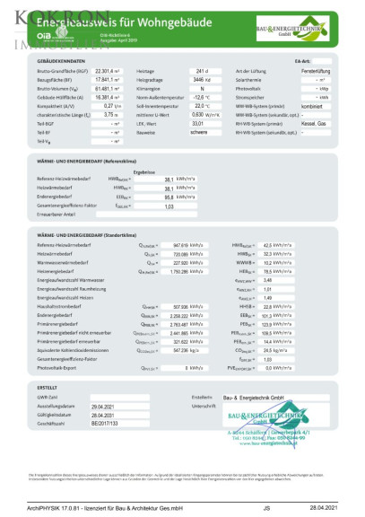 | Heizwärmebedarf: | B 38,10 kWh/m²a |