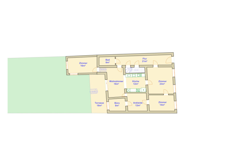 Weiters ist es möglich, im hinteren Bereich des Gartens ein weiteres Wohngebäude zu realisieren. Auf 2 Etagen kann somit eine zusätzliche Nutzfläche von ca 120 m2 realisiert werden. Der Fantasie in der Nutzung als Gästehaus, Poolhaus, Atelier oder ganz klassisch als getrennte Wohneinheit für weitere Familienmitglieder.