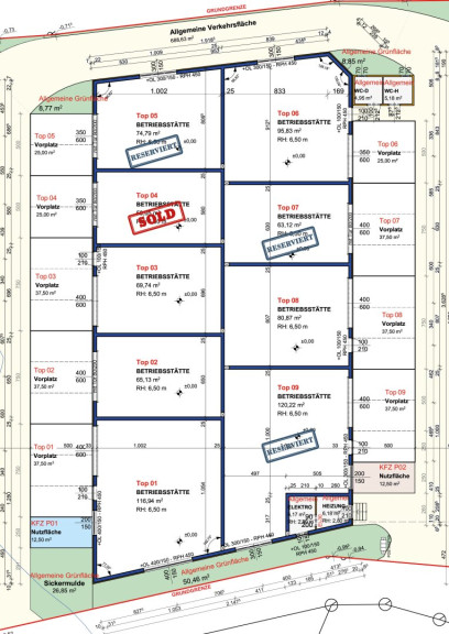 - Betriebshallen und Gewerbeflächen mit 6,5 Meter Höhe