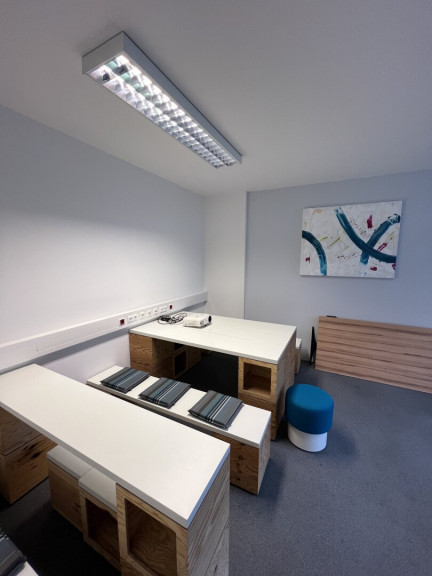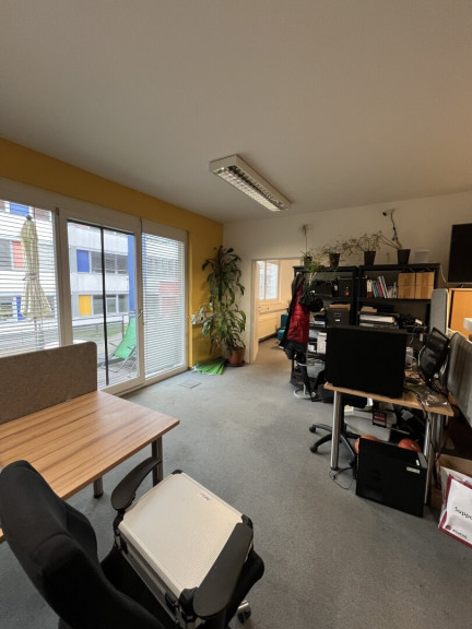 Die Bürofläche befindet sich im 1. Obergeschoss eines rundum begrünten Gebäudes. Sie ist barrierefrei mittels Aufzug erreichbar und liegt absolut ruhig mit Blick und einem Balkon in den begrünten Innenhof.