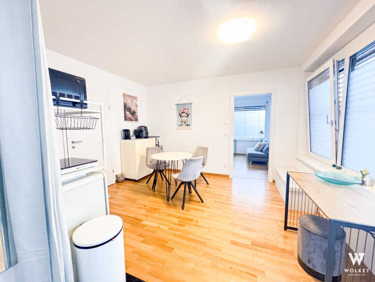 Diese charmante, ca. 36 m² große Erdgeschosswohnung überzeugt durch ein durchdachtes Raumkonzept und eine helle, freundliche Atmosphäre. Großzügige Fensterflächen sorgen für viel Tageslicht und sind mit Außenjalousien ausgestattet, die sowohl Privatsphäre als auch wirksamen Sonnenschutz bieten.