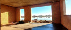Großer, offener Wohn-Essbereich mit bodentiefen Fenstern und unverbaubarem Seeblick