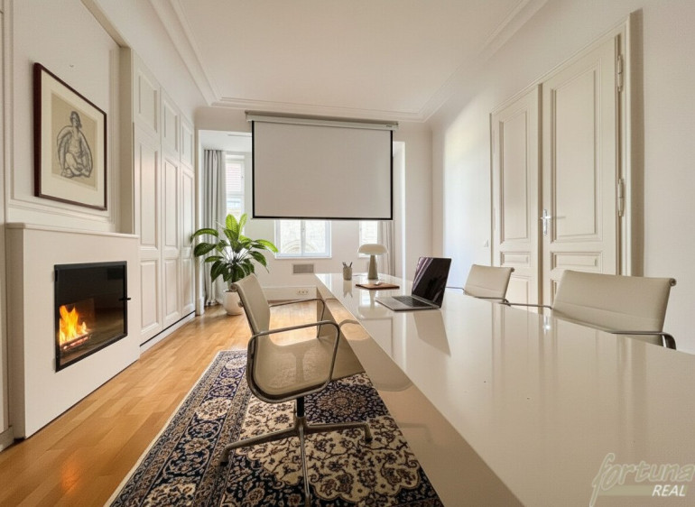 • repräsentativer Wohnsalon mit klassischer Altbauhöhe und großen Fensterflächen mit doppelter Isolierverglasung; raumseitig teilbar,