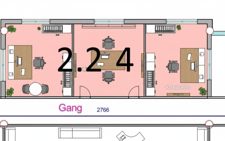 Gestalten Sie Ihre Arbeitsumgebung nach Ihren Vorstellungen! Der ausgeklügelte Grundriss dieser Fläche ermöglicht eine flexible Raumgestaltung, während der hochwertige Doppelboden und der pflegeleichte Kunststoffboden sowohl Komfort als auch Funktionalität bieten. Die beiden WCs sorgen für zusätzlichen Komfort, und dank des Personenaufzugs gelangen Sie und Ihre Kunden mühelos in die 2. Etage.