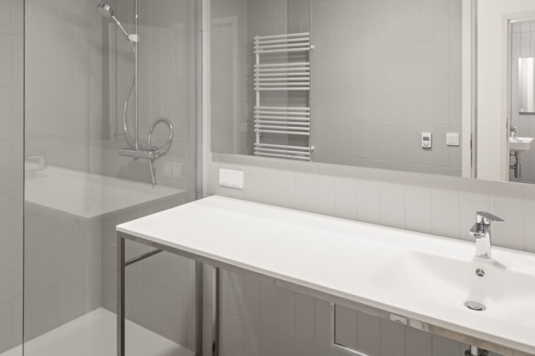 Parkett, Fußbodenheizung, Einbauküche, Dusche