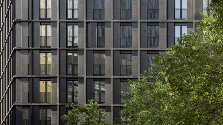 Das elegant gestaltete, 65 Meter hohe Wohnhochhaus von den Architekten Jabornegg & Pálffy besticht durch seine bodentiefen Fenster und Schiebeläden – die jeweils die Funktion des Blend- oder Sonnenschutzes übernehmen. Der individuelle Gebrauch der Lochblechläden fördert ein differenziertes Fassadenbild innerhalb einer sehr regelmäßigen Gliederung.Auf 17 Stockwerke verteilt finden sich 302 modernst ausgestattete 1- bis 3-Zimmer-Wohnungen